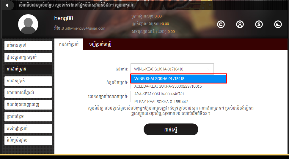 ការណែនាំរបៀបដាក់ប្រាក់