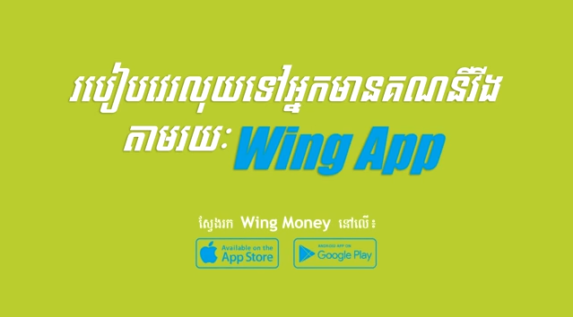 ជំហានដំបូង អ្នកត្រូវទាញយកកម្មវិធីវីង (Wing) ពី App Store or Play Store ជាមុនសិន បន្ទាប់មកអ្នកត្រូវចូលទៅកាន់កម្មវិធីវីងនោះ រួចអនុវត្តន៍ដូចខាងក្រោមនេះ៖